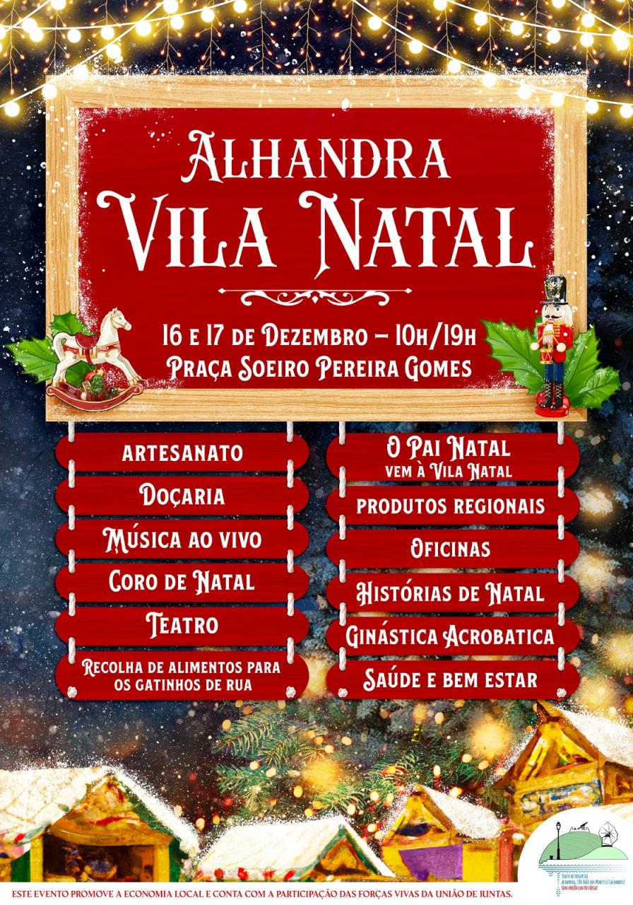 Visite a Vila Natal de 16 e 17 de dezembro na Praça Soeiro Pereira Gomes em Alhandra, na União de Freguesias de Alhandra, São João dos Montes e Calhandriz! A entrada é gratuita.