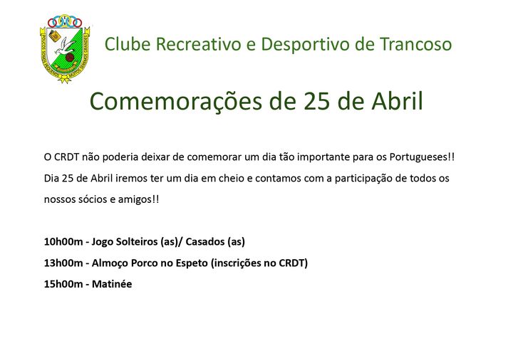 Programa de 25 de Abril do Clube Recreativo Desportivo de Trancoso